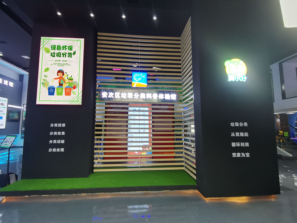 據廊坊市貓先生環??萍加邢薰矩撠熑私榻B,展館總面積650平米,分為兩層。一樓有文化長廊區、影院宣傳區、兒童手工展區、游戲互動區,安次區垃圾分類科普體驗館設置的兒童手工展區就是讓孩子們從小做起、從自身做起,養成垃圾分類的好習慣。二樓是垃圾分類大數據中心。體驗館通過視頻、圖文、游戲等多種形式宣傳垃圾分類,并通過對各項垃圾分類工作進行數據的匯總收集以及統計,為垃圾分類提供了運行保障和數據支撐,為安次區增加了一個生活垃圾分類宣傳教育的前沿陣地。